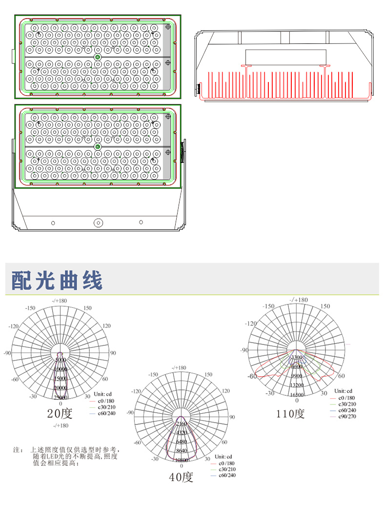 ★ 進口LED 光源,整燈光效高達 120lm/W, 同比金鹵燈節(jié)能 60%以上。